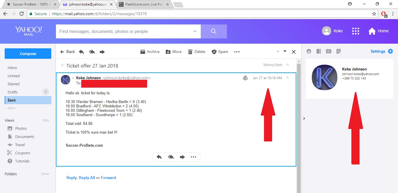 | 03.02.2018 | Portsmouth - Doncaster | X | 3.40 | 2:2 win |